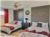 Le chalet comprend trois chambres à coucher à l'étage, avec un lit queen dans chacune des chambres et une chambre au sous-sol avec deux lits doubles, ce qui permet d'accueillir confortablement jusqu'à 10 personnes. Au niveau principal (rez-de-chaussée) se trouvent un salon accueillant avec un foyer au gaz (en fonction du 1er décembre au 15 avril), la cuisine, la salle à manger et la salle d'eau, munie d'une laveuse-sécheuse.