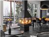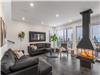 Un salon avec 2 divans et foyer au propane