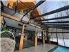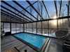 Notre piscine chauffée de type conteneur, accessible à l'année, permet de savourer la baignade même en plein hiver. Elle est désormais abritée par un solarium lumineux, offrant confort et protection en toute saison.
