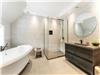 Grandes pièces, hauts plafonds, superbe fenestration, planchers chauffants dans les salles de bains et salle familiale.