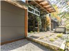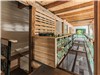 Terrasse couverte au rez-de chaussée, incluant long banc en bois