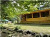 sécheuse,une chambre principale avec lit queen, ainsi qu'une mezzanine à aire ouverte équipée de deux lits queen (espace non fermé). Une grande véranda fermée est annexée au bâtiment principal. À l'extérieur, il y a une douche extérieur à la belle étoile.