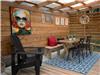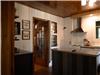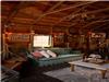 In the living room, a stone fireplace to warm you up!