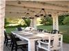 A pergola in front of the patio door of the French style for your meals with friends and a terrace with chair and table more colorful!