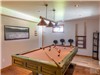 Lower floor: Game room with pool table and dart board / Living room area with wood stove / 1 closed bedroom with 2 double beds / 1 bathroom with shower.