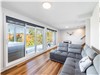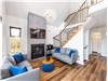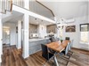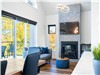 The interior of the chalet is bathed in natural light, creating a warm and welcoming atmosphere. The indoor propane fireplace adds an extra touch of comfort and charm.