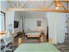 On the second floor, you will find one full bathroom, 1 bedroom and a mezzanine which divides into two bedrooms separated by curtains.