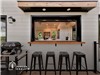 BAR AND DINING AREA with stools and GARAGE DOOR