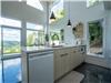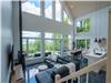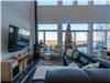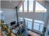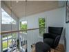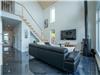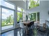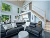 - The bright living room with large windows brings the outdoors in