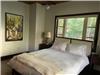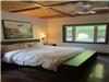 There are four bedrooms: one children's room with four single beds, two spacious rooms with queen beds, and one master bedroom with a king-sized bed, a walk-in closet and an attached bathroom. The home's entrance is very private, as it is surrounded by forest and mountains, offering a secluded and peaceful setting. The house also includes two full bathrooms.