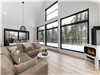 In this chalet, light enters through the large windows, the forest frames the view, and one quickly feels a soothing atmosphere.