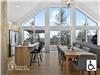 The large windows generously open the space to nature and panoramic views, flooding the chalet with natural light and highlighting its contemporary lines and warm ambiance. It naturally becomes a gathering place, around the dining table, in the inviting living areas or by the fireplace, where true chalet moments unfold, filled with simplicity, softness and authenticity.