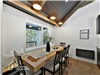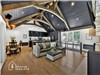 The cathedral ceiling, exposed beams, and wood-burning fireplace create a setting that is both spectacular and welcoming, ideal for relaxation and shared moments. Every space has been thoughtfully designed to offer comfort, conviviality and privacy, no matter the season.