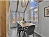 A few steps down, the compact and inviting dining room is the perfect place for après-ski snacks, board games, impromptu meals, or those evenings when time seems to stand still.