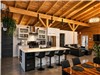 The open-concept living area is exceptionally bright, featuring a cozy wood-burning fireplace. A sofa bed in the main-floor living room adds extra convenience to this inviting space. Enjoy a large quartz kitchen island, a fully equipped kitchen, and a refrigerator with a built-in water and ice dispenser. Gather for raclette or Fondussimo around the massive wooden dining table that comfortably seats over 12 guests.