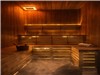 Unwind in the large indoor dry sauna, also equipped with heated flooring, for the ultimate relaxation experience.