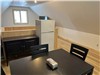 • Lounge area with futon, rocking chair, storage unit, and 65-inch smart TV