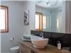 À l'étage inférieur, vous trouverez un second salon, avec son poêle au bois vitré. Vous trouverez une grande chambre de style dortoire ainsi qu'une pièce polyvalente ayant un lit escamotable. Une grande salle de bain complète les lieux.