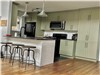 Rez-de-chaussée : Cuisine, salon, salle à manger avec foyer, chambre des maîtres et une grande salle de bain avec baignoire et une douche.