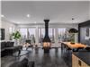 Un salon avec 2 divans et foyer au propane