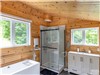 Mezzanine : une chambre à aire ouverte / une salle de bain complète avec bain et douche séparés