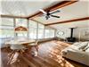Perché en surplomb du lac, le chalet vous dévoile un panorama à couper le souffle depuis sa terrasse couverte - l'endroit parfait pour savourer votre café matinal ou admirer les couchers de soleil. La lumière naturelle inonde généreusement le salon et la cuisine à aire ouverte, créant une atmosphère chaleureuse et invitante.