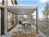 Grande terrasse privée avec chaises longues et espace repas comprenant table et chaises couvertes par une pergola