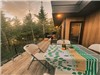 La salle à manger est dotée d'une grande table avec 6 places assises et directement reliée au balcon spacieux avec une belle vue, d'un BBQ et de mobiliers pour prendre le repas dehors.