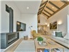 L'aire de vie principale impressionne avec ses plafonds cathédrale en bois, son foyer chaleureux, sa table de baby-foot et ses grandes fenêtres mettant en valeur le paysage montagneux. La cuisine à aire ouverte comprend un vaste îlot, des finitions modernes en bois et tout le nécessaire pour préparer des repas mémorables.