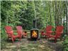 Patio avec magnifique vue sur le lac. Chaises, quai flottant, pédalo avec 4 vestes de flottaison adulte, aire de feu avec bois."Florida Room"(espace moustiquaire ).Possibilité de mise à l'eau pour bateau à moteur à 1 km du chalet à la halte routière municipale.