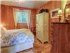 Un lit 54 pouces, deux petits meubles de rangements, crochets muraux pour le linge. Toit cathédrale avec verrière vue sur le lac.