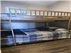 1 chambre avec un lit queen + une chambre avec 2 lits simple ( peux faire un lit king ) + un lit double superposé par un lit simple.
