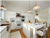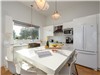 Large all-white kitchen with large quartz countertop, perfect for cooking with family or friends and gathering for an aperitif.