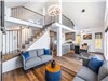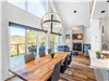 The interior of the chalet is bathed in natural light, creating a warm and welcoming atmosphere. The indoor propane fireplace adds an extra touch of comfort and charm.
