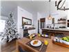 The gourmet kitchen is a chef's dream, featuring high-end appliances, ample counter space, and everything you need to prepare delicious meals. Share laughter and culinary delights with your family and friends at the dining table, all while taking in the river's ever-changing beauty through the panoramic windows.