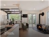 BAR AND DINING AREA with stools and GARAGE DOOR
