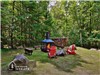 Outdoor fire pit (3 seasons) with Adirondack chairs and wooden benches