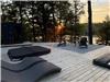 The wellness space features an authentic Finnish sauna for deep relaxation, a steam shower reminiscent of luxurious Nordic spas, a heated swim spa open year-round with lake views, and an outdoor jacuzzi perfect for stargazing.