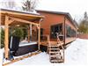 Located in the Bas-Saint-Laurent region, Domaine Riverin offers a peaceful and welcoming setting, ideal for family vacations or getaways with friends. This spacious chalet can accommodate up to eight guests and provides all the comforts needed for a memorable stay: four bedrooms, one bathroom, a fully equipped kitchen, a year-round private spa, a covered terrace with a propane fireplace, and a living room featuring a smart TV for cozy evenings indoors.