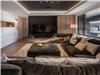 Large, luxurious living room with a wood-burning fireplace.