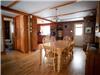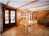Additionally, there is a fully-equipped, charming kitchen with red ceramic tiling and a dinning room perfect for a meal à six, or eight, or ten...you decide. On this floor, you will also find a second bathroom with a claw-foot bathtub aligning the lovely round logs of the outer wall.