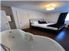 Primary Bedroom – King bed with plush bedding, soaking tub, Smart TV