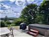 Outside, there is a large sunny terrace with a year-round spa, charcoal BBQ, and patio set. There is also a dedicated campfire area by the water with a fire pit and several Adirondack chairs.