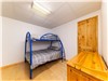 Basement: living room with TV, bedroom 3 with double bed, bedroom 4 with double and single bunk beds, bathroom with shower and laundry area.